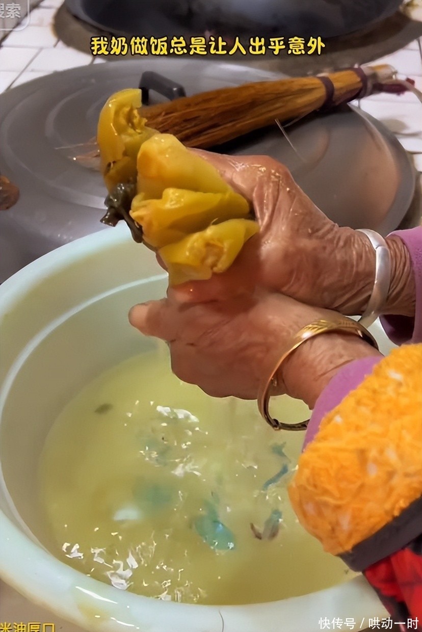 视频里她伸手探进酸菜坛子捞菜的模样,像极了我们记忆中那位总把淘米水存起来浇花、把旧毛巾剪成抹布的外婆。不是不懂卫生,而是把“物尽其用”刻进了骨子里。
